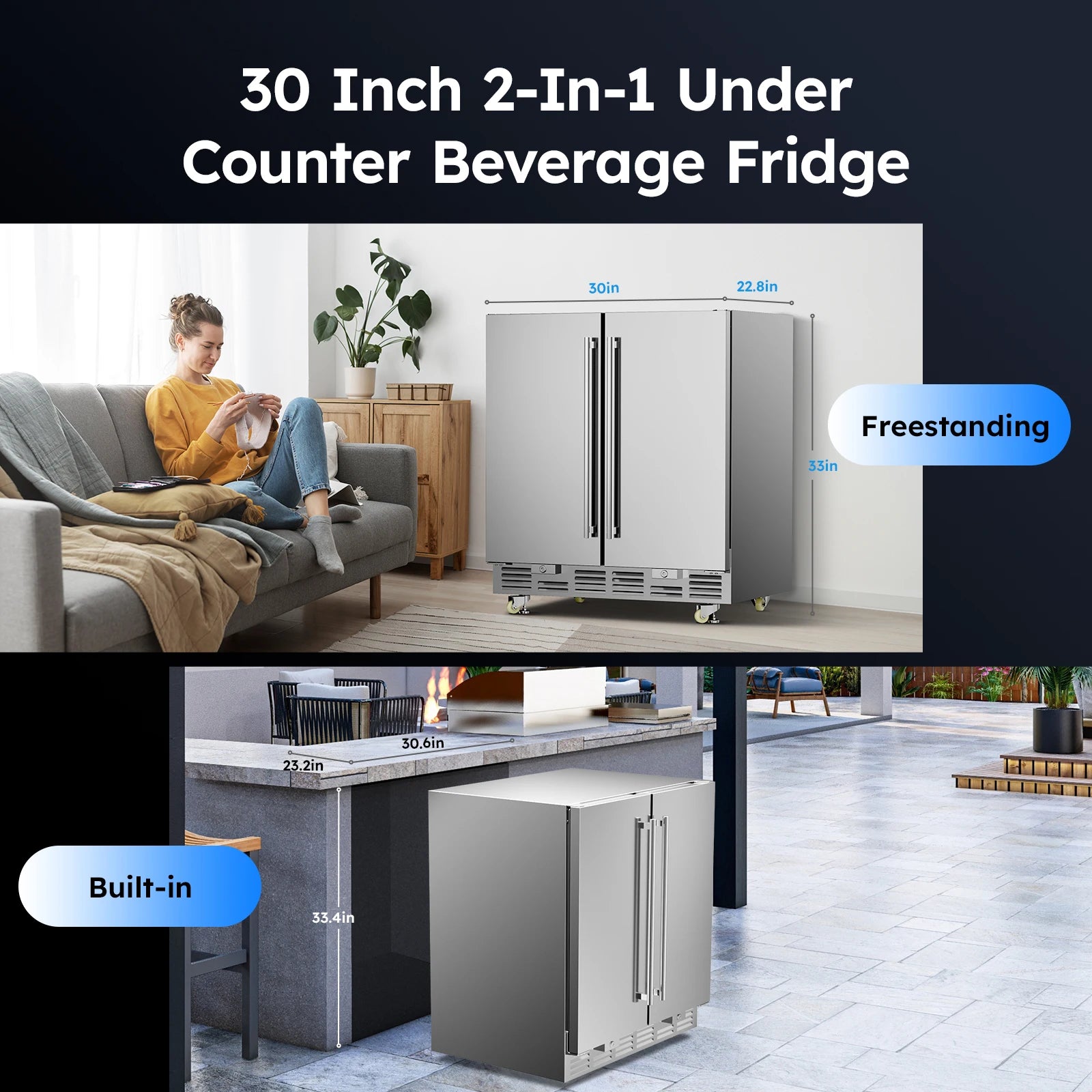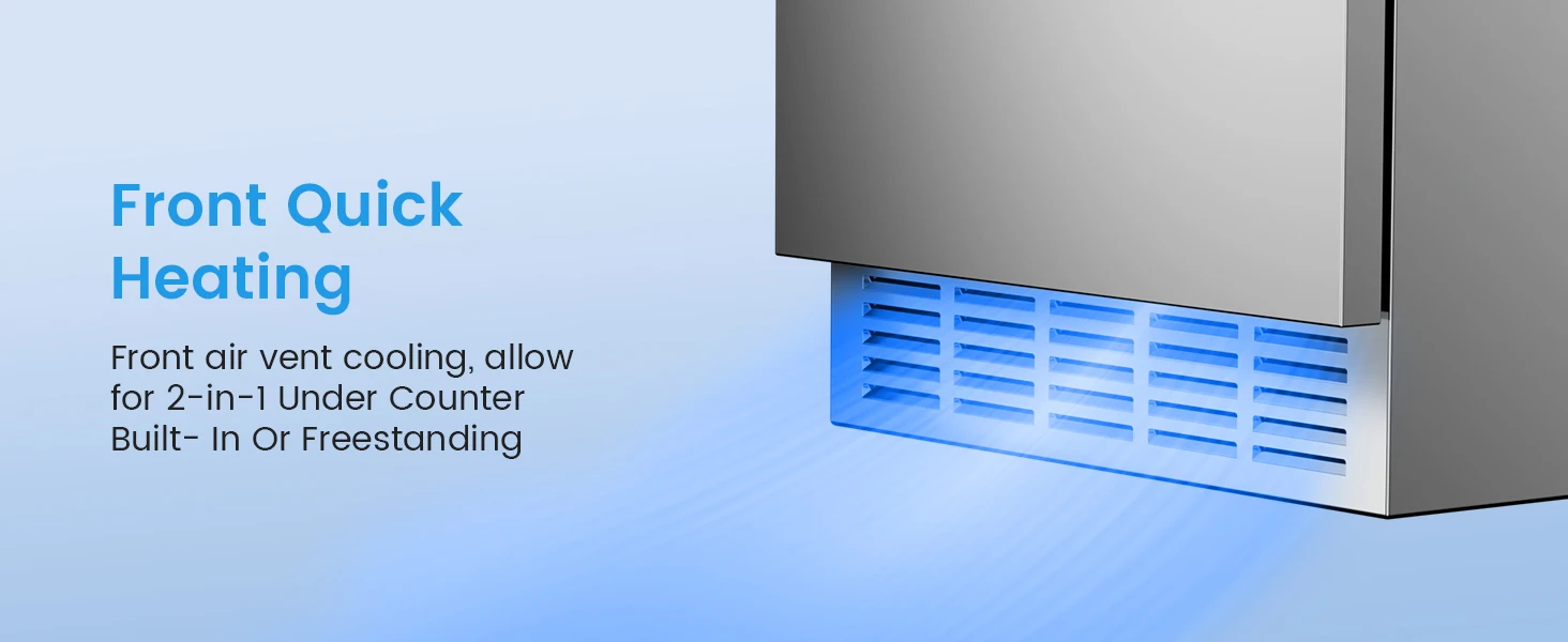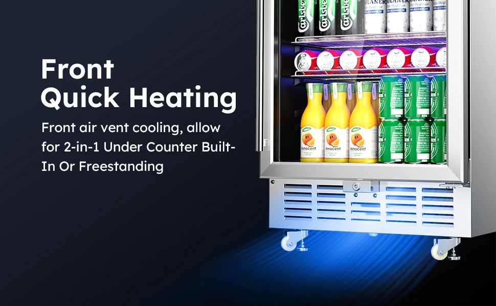 【2 in 1 Built-in or Freestanding Installation】- Adapt front vent cooling at the bottom of the outdoor beverage refrigerators, dissipating heat more thoroughly. Equipped Wheels design is easy to move and relocate, under counter refrigerator for outdoor kitchen can be moved under the kitchen counter, or standalone in the living room, garage, basement. Outdoor refrigerator with undercounter openings sized to allow plenty of room for installation.