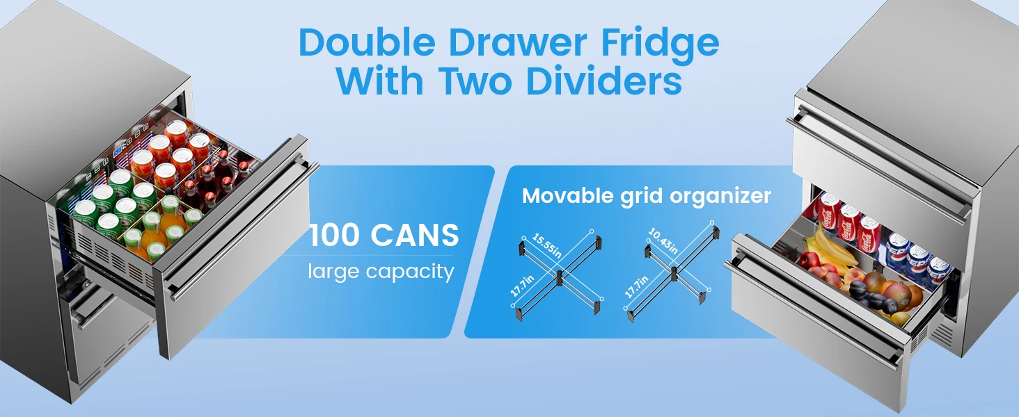 【Quiet Running and Fast Cooling Beverage Fridge】- The outdoor beverage refrigerator under counter equipped with upgraded compressor and fan circulation system with precise temperature control, your drinks are kept in optimal condition. Whenever you can relish refreshing moments with this exceptional beverage refrigerators for patio. With minimal vibration during operation, the noise level stays below 40 dB, providing a quiet environment for your house.