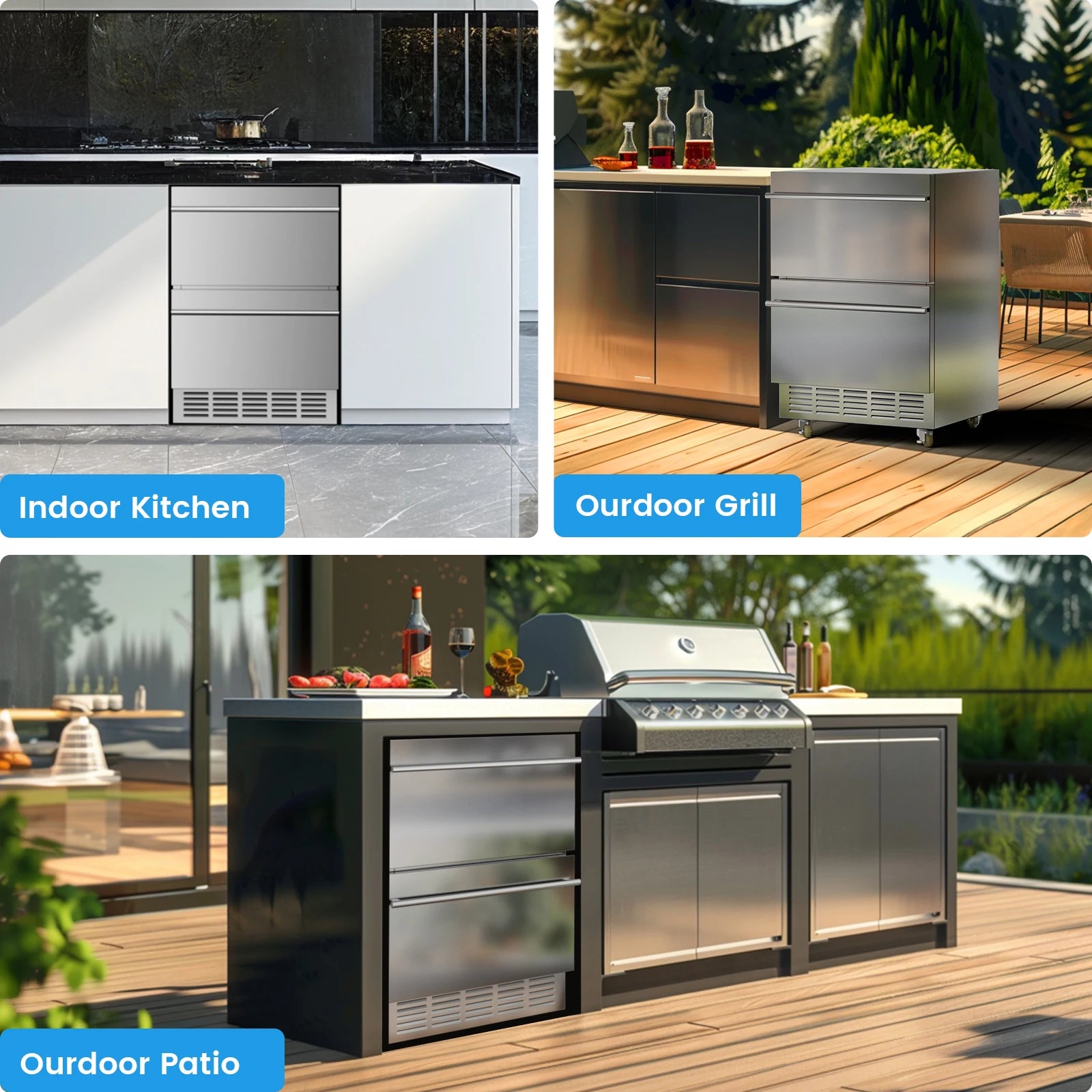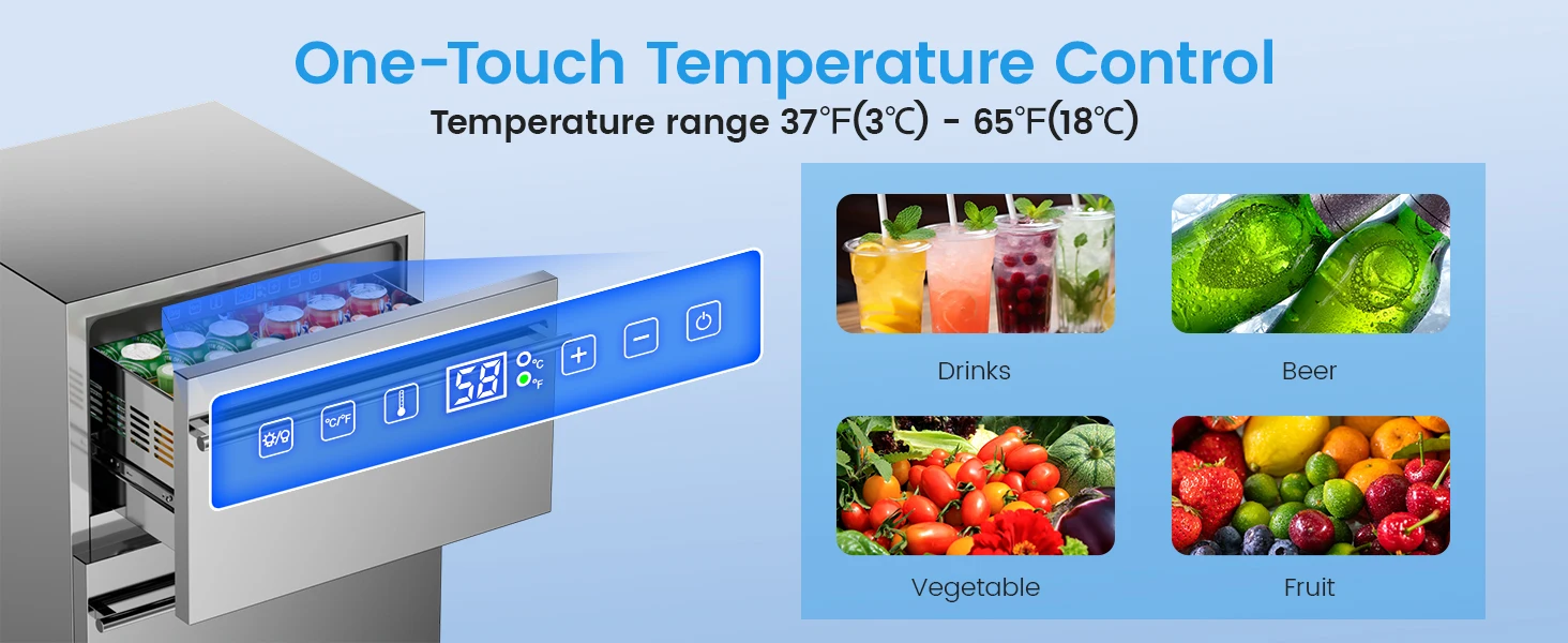 【Temperature Control & Multi-Function Panel】- This outdoor fridge for outdoor kitchen uses electronic temperature control with real-time temperature display and one-touch easy adjustment from 37℉(3℃)- 65℉(18℃). With temp memory function after power failure restart to protect your drinks stable. The undercounter beverage fridge cooler is equipped with LED cold light sensor lighting, its easy to get things at night. The under counter fridge is auto-defrosting every 6 hours.