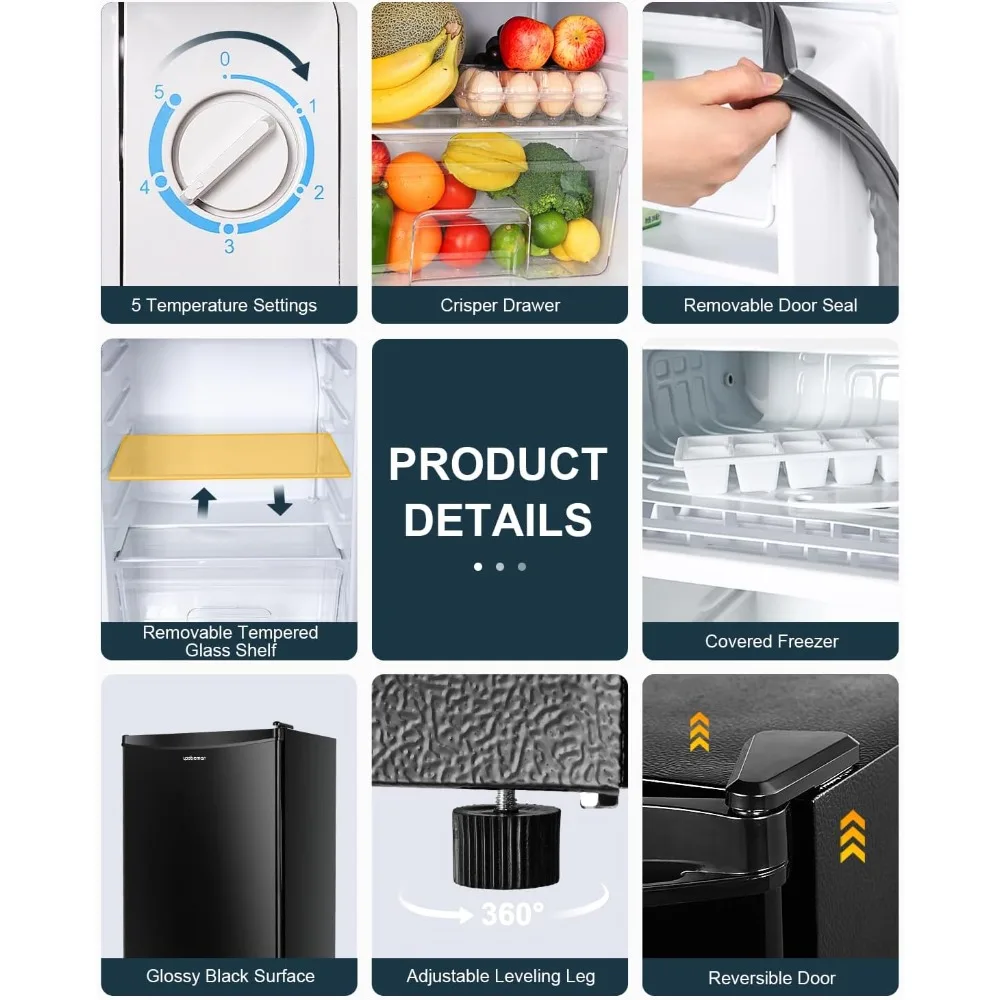 3.2 Cu.Ft Mini Fridge with Freezer, Single Door Mini Fridge, Dorm Fridge, Adjustable Thermostat, Mini Refrigerator for Bedroom