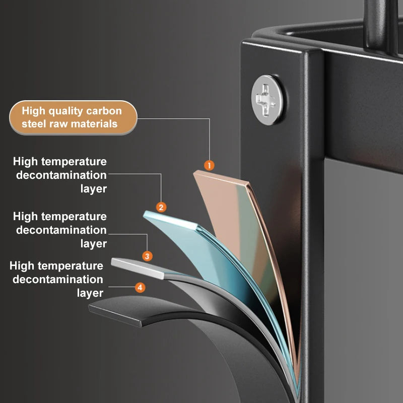 made of high-quality carbon steel, after special process treatment, a dense anti-rust layer is formed on the surface, which effectively prevents moisture erosion and extends service life.Even in a humid kitchen environment, the stability and durability of the product can be maintained.