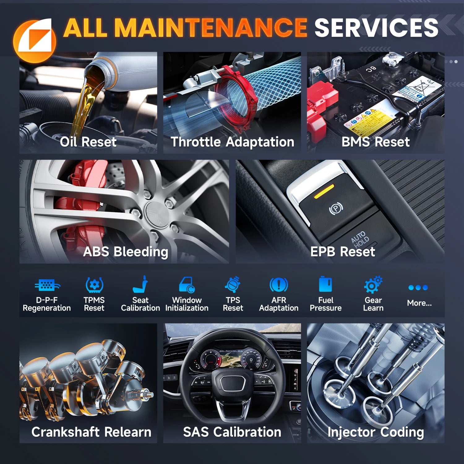 - 30+ Reset Services: Perform essential resets including ABS bleeding, DPF regeneration, BRT, and A/F adjustments.