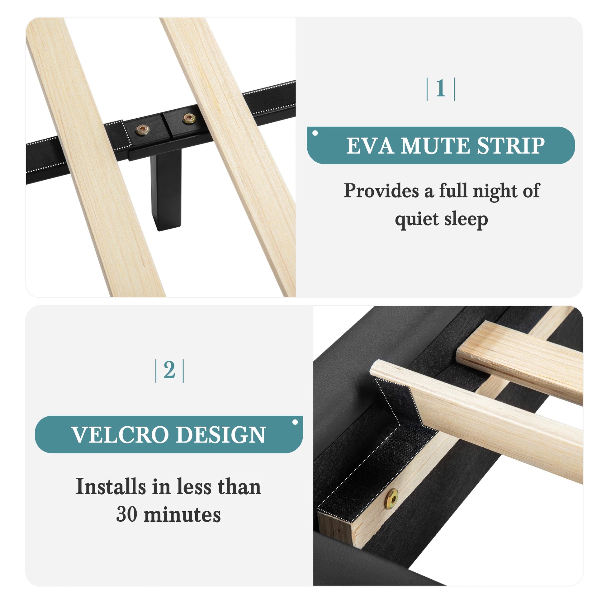 HOOMIC Modern Faux Leather Bed Frame with Iron Decor Low Profile Platform Bed Height Adjustable Headboard