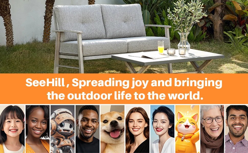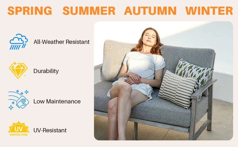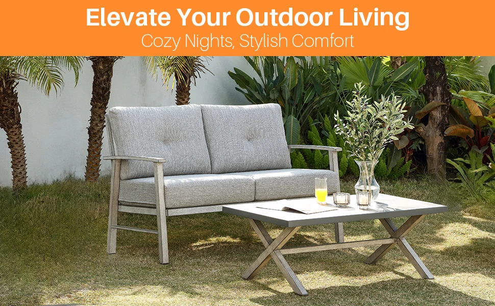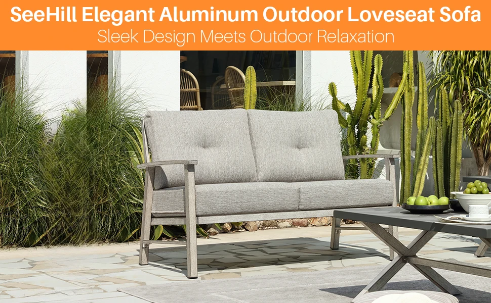 SeeHill Patio Furniture Loveseat Sofa, 2 Seats Outdoor Aluminum Patio Sofa Couch Furniture with Cushion for Poolside, White Oak