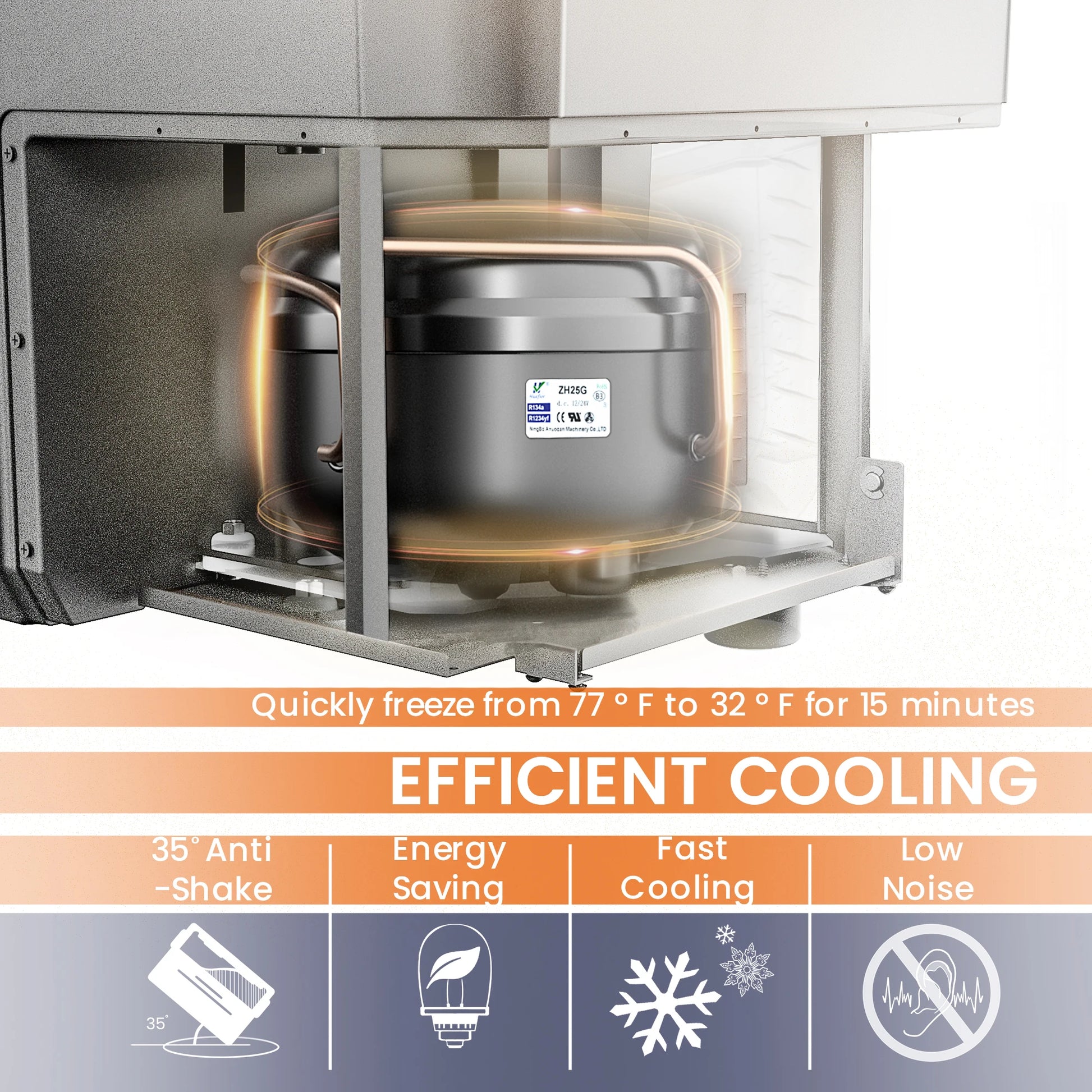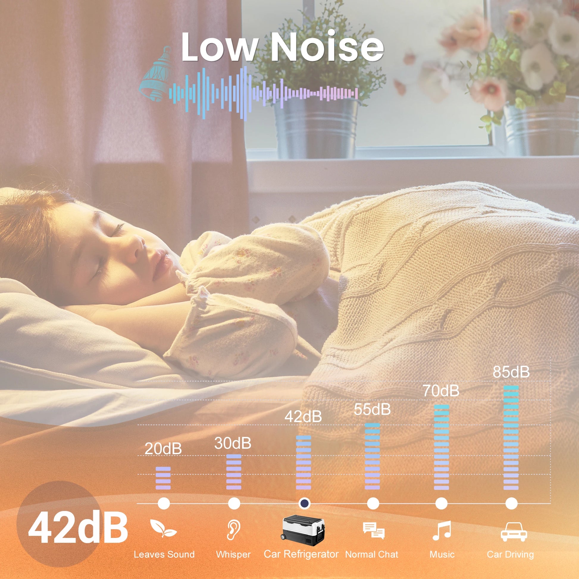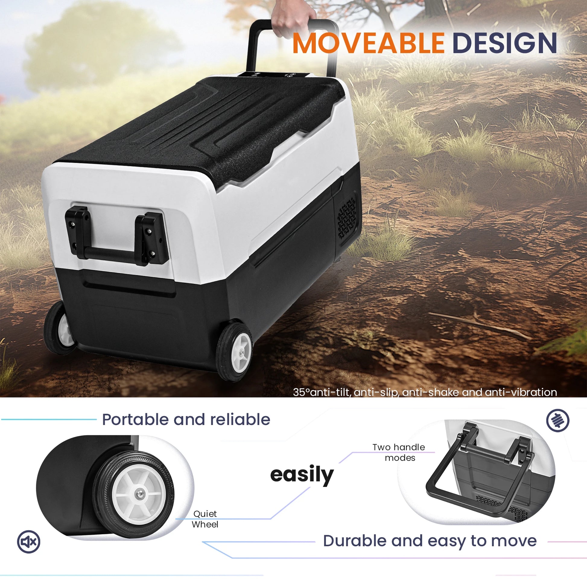 Efficient Cooling Technology:Benefit from our advanced compressor technology, providing swift cooling and energy-efficient modes. With a mere 45W energy consumption, our car fridge efficiently preserves food freshness. Even during power outages, the dependable seal ensures items stay cool for 1-3 hours, perfect for extended journeys.