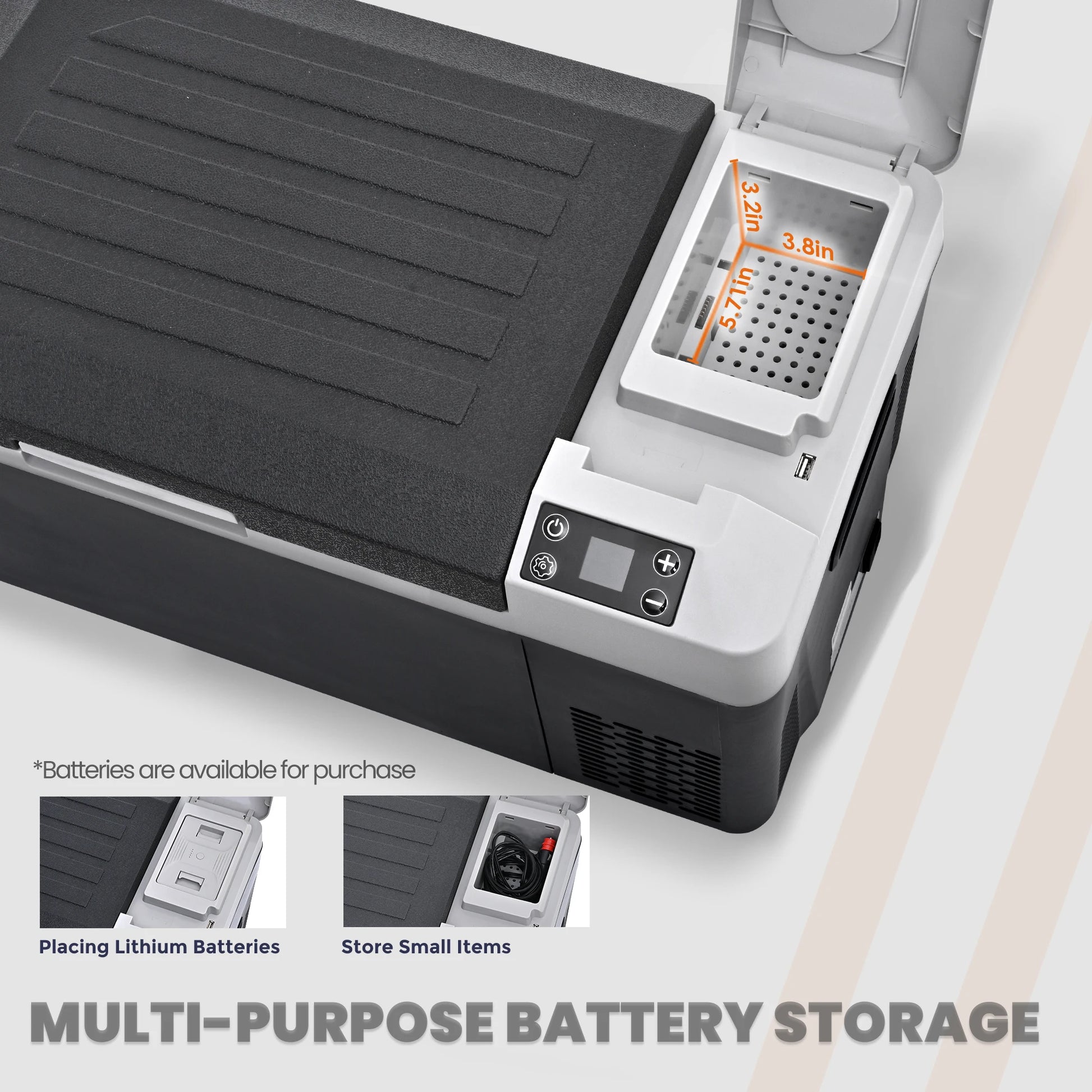 Spacious & User-Friendly Design: Boasting a 26QT capacity, equivalent to 42 cans of 330ml beverages, this portable refrigerator is equipped with a user-friendly LCD control panel for easy temperature adjustments and clear display.