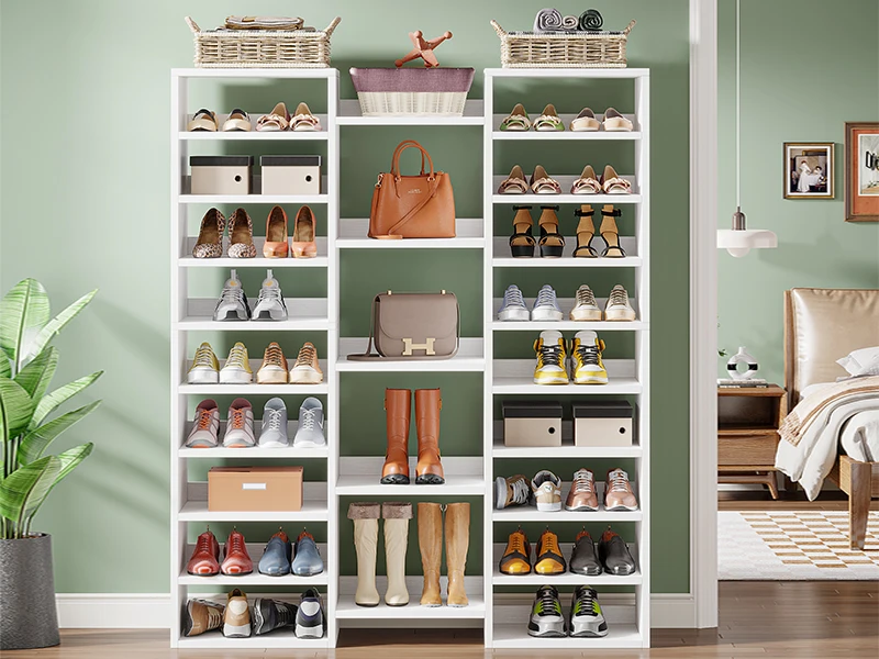【Durable & Sturdy Construction】- Made from E1-grade MDF, this shoe storage rack is solid and sturdy. The 0.59" thick boards are waterproof, scratch-resistant, and wear-resistant. Plus, the included anti-tip safety kit ensures the shelf stays secure, even around children and pets.