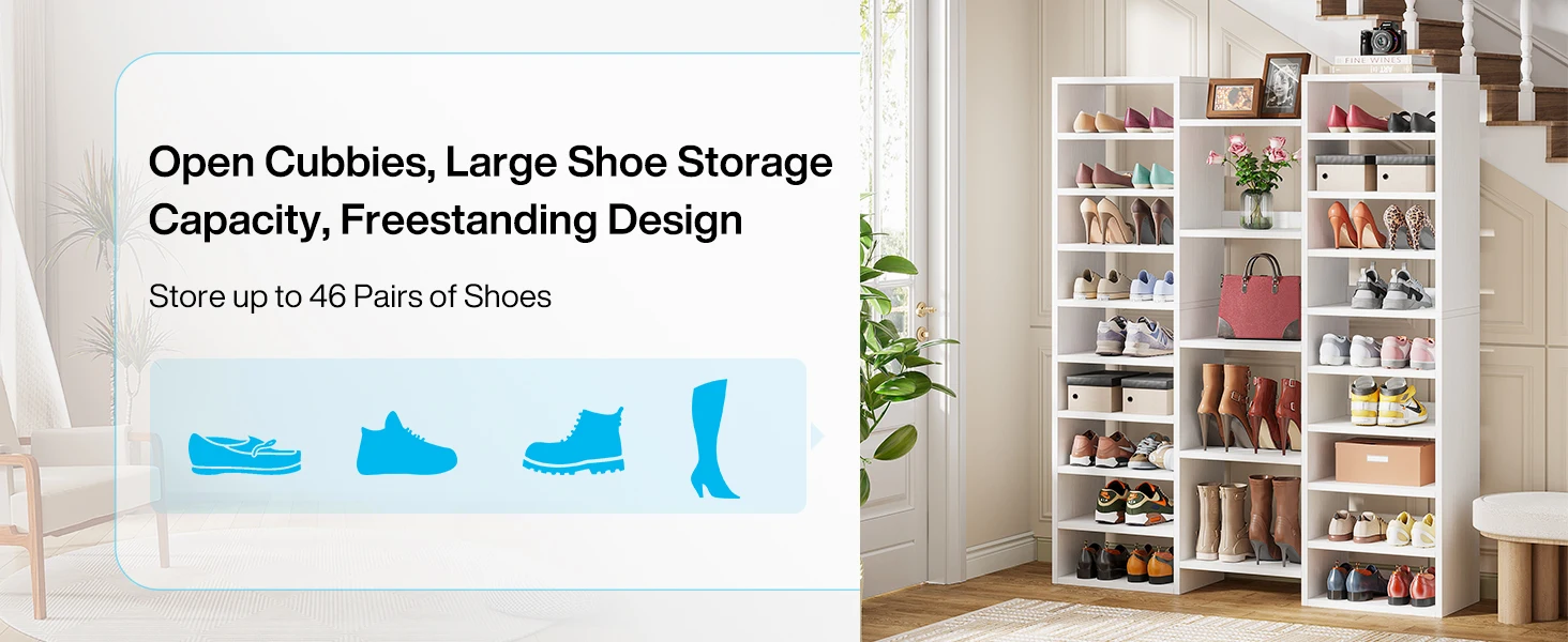 【Versatile Use】- This shoe cabinet is designed to make the most of spaces. It can be used not only as a shoe rack but also as a decoration storage display shelf, perfect for the entryway, bedroom, hallway, living room, closet, and more.